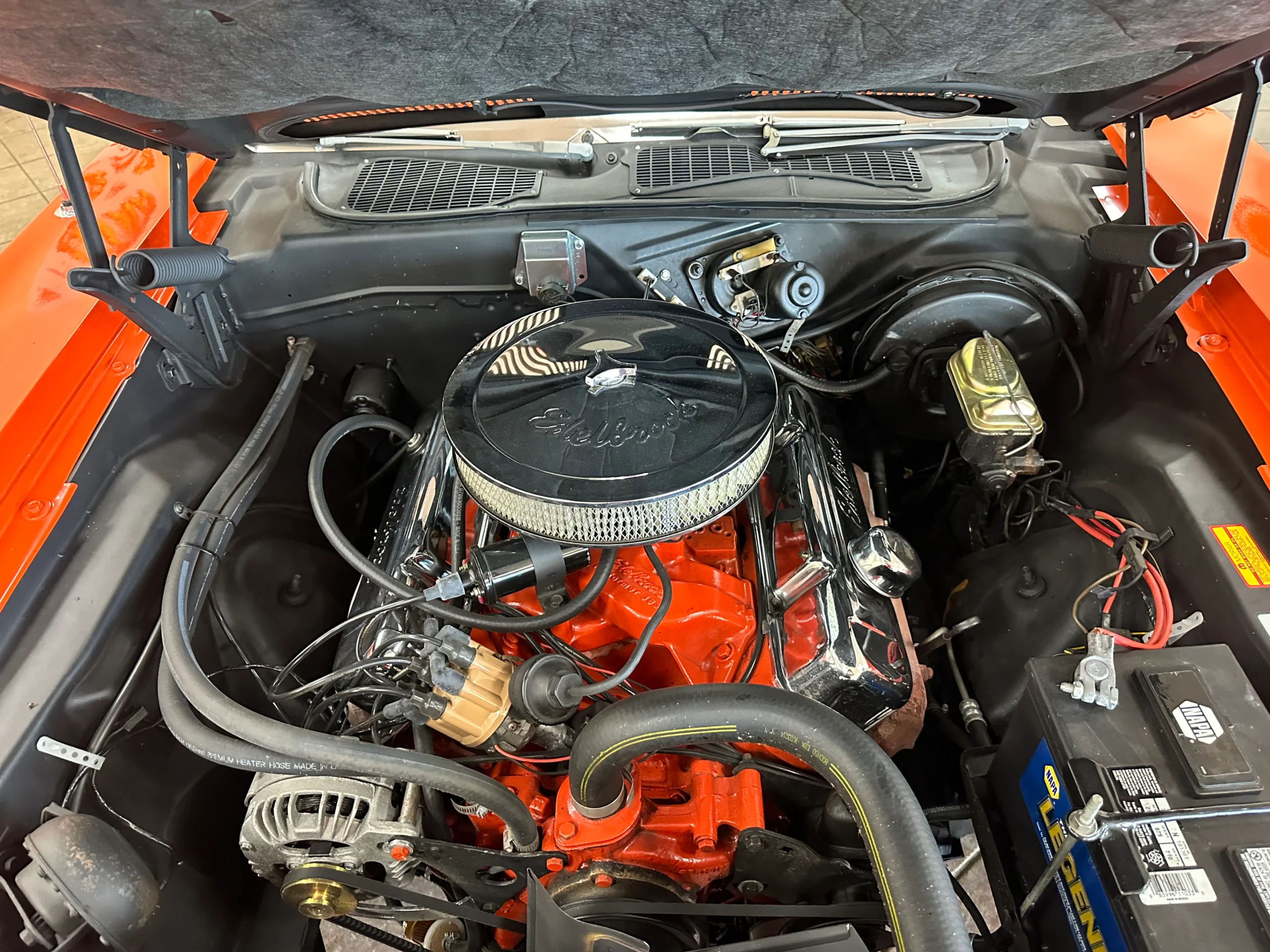 Black Power Top, Power Steering, Power Brakes, Front Disc Brakes, Edelbrock Intake, Edelbrock Carburetor, Edelbrock Chrome Valve Covers, Chrome Air Cleaner, Custom Magnum 500 Chrome Wheels, 235x60xr15 Front Tires, 295x50xr15 Rear Tires, 3:23 8 ¾ Pumpkin Rear End