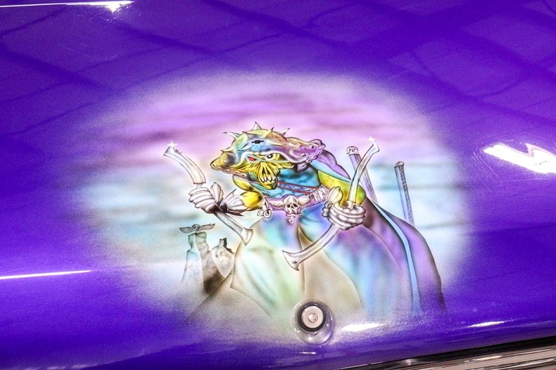 catching grey flames running along the sides and a meticulously airbrushed design on the rear decklid.