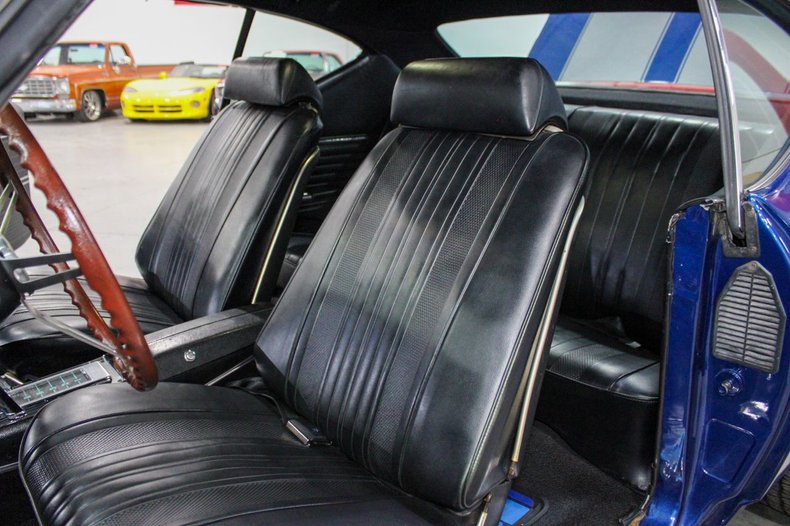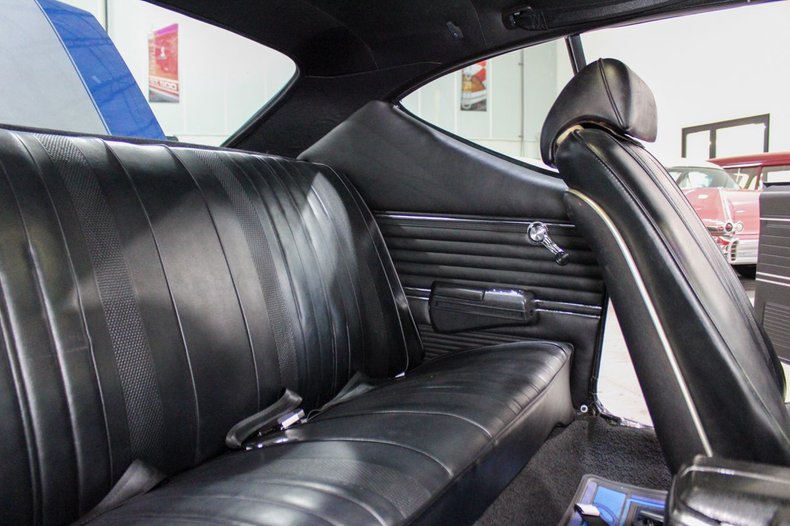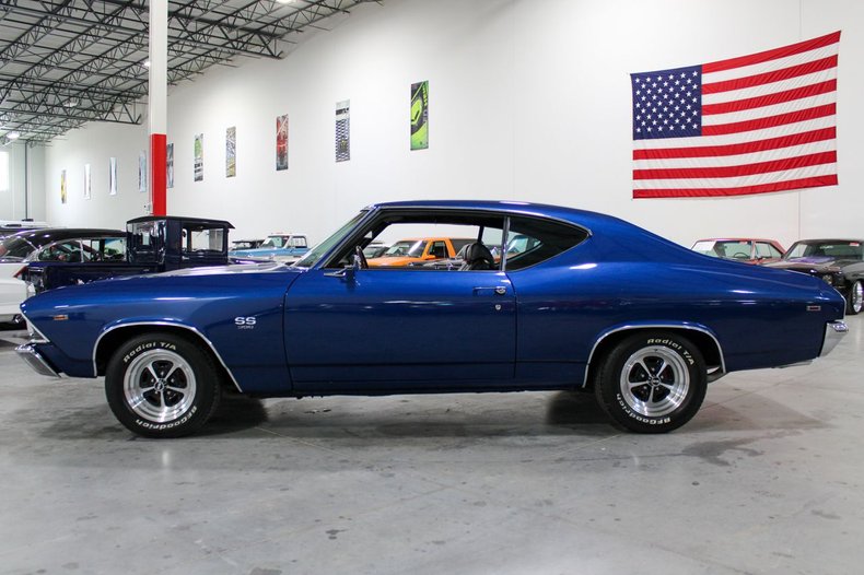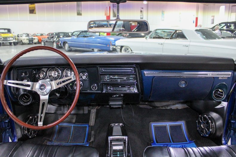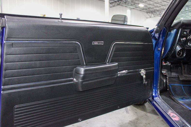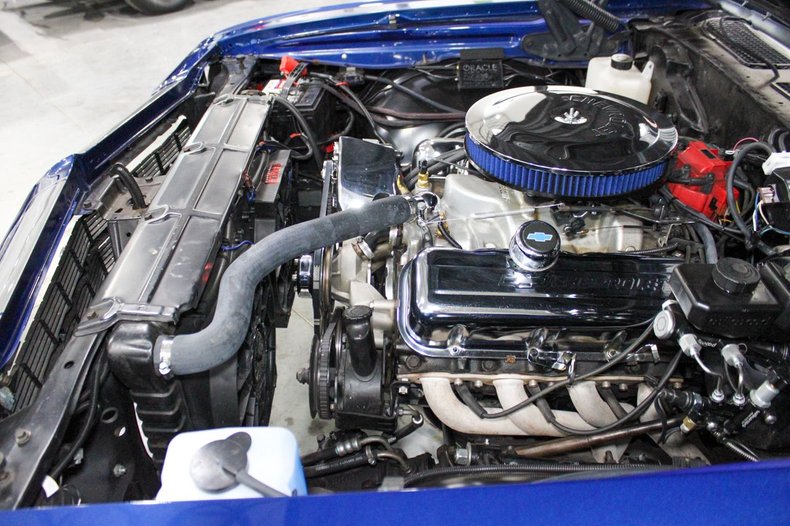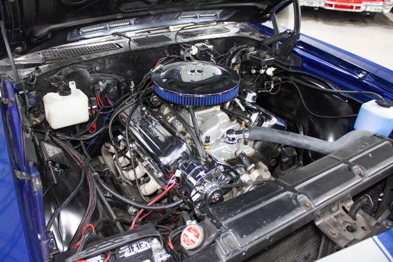 This Chevelle comes in a clean Candy Apple Blue paint job complemented by a fresh black interior. Powering this classic Chevy is a fresh 454 V8 and automatic TH350 transmission.