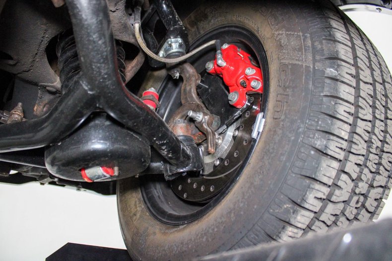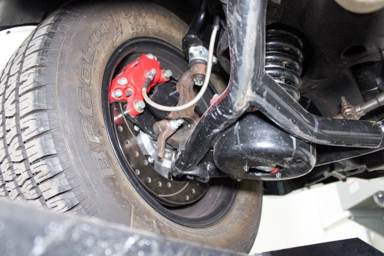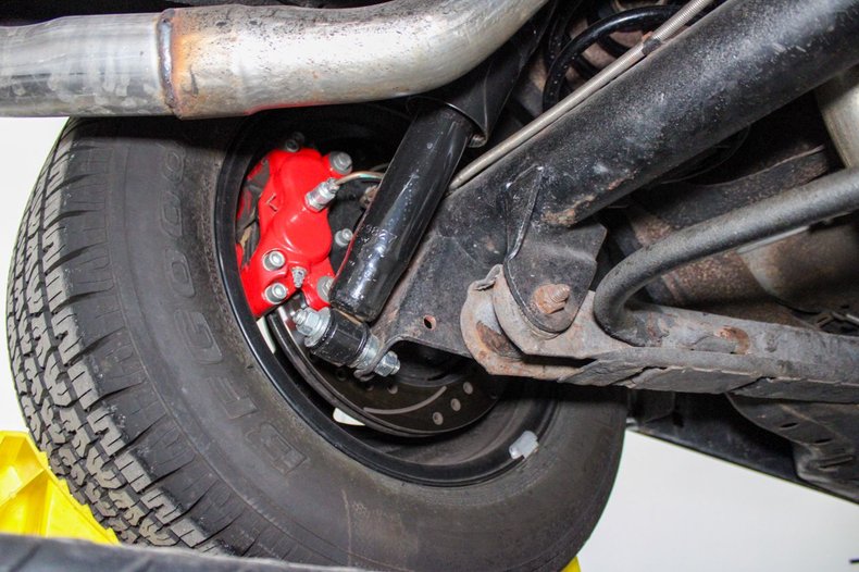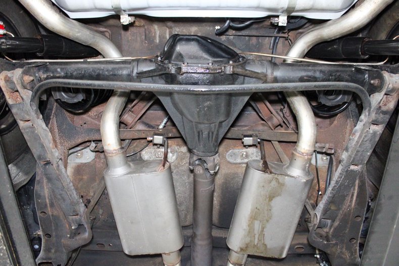 The new drivetrain includes the following: Howard 540 cam hydraulic lifters, Scorpion roller rockers, HV oil pump, double roller timing chain, competition cam guide plates, big tube push rods, competition cam dual plane intake, Proform 750 dp, new H.E.I, new balancer, 350 turbo shift with B&M 2200 stall converter, 12 bolt rear end, with boxed control arms, stabilizer, coil shacks, Holley Sniper EFI self-tuning 4 barrel fuel injection, fuel pump, new gas tank, fuel pump sending unit, new radiator cooling fans, and hydraulic motor mounts.